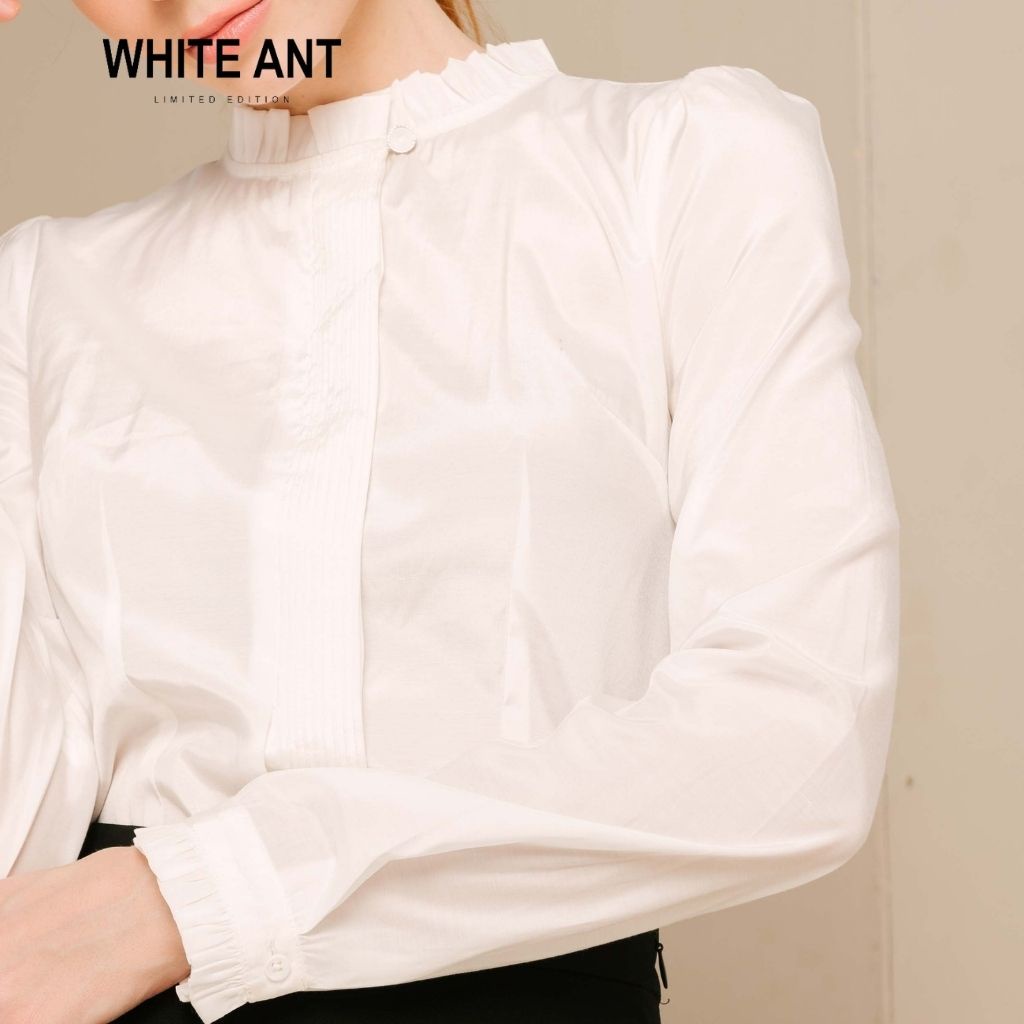 Giới thiệu Áo Sơ Mi Nữ Công Sở Dài Tay WHITE ANT Thiết Kế Cổ Bèo Nhún Điệu Đà, Chất Liệu Lụa Mềm Mịn Chống Nhăn Xù 171932012