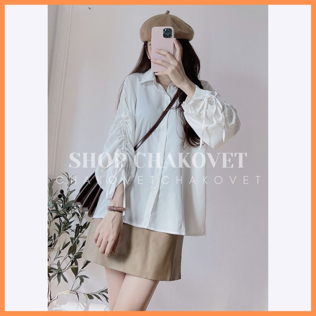 Giới thiệu Áo sơ mi nữ dài tay trắng CKA878, kiểu áo nữ form rộng tay phồng rút dây thắt nơ dáng babydoll style hàn quốc mặc đẹp