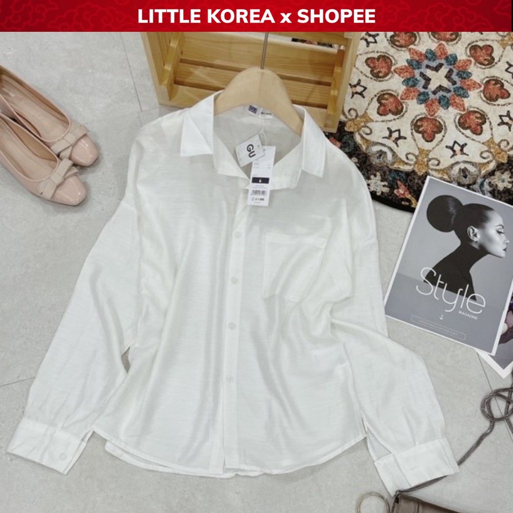Giới thiệu Áo Sơ Mi Nữ GU Màu Trắng Basic Form Rộng Dáng Suông Tay Dài Thời Trang Kiểu Công Sở - LITTLE KOREA