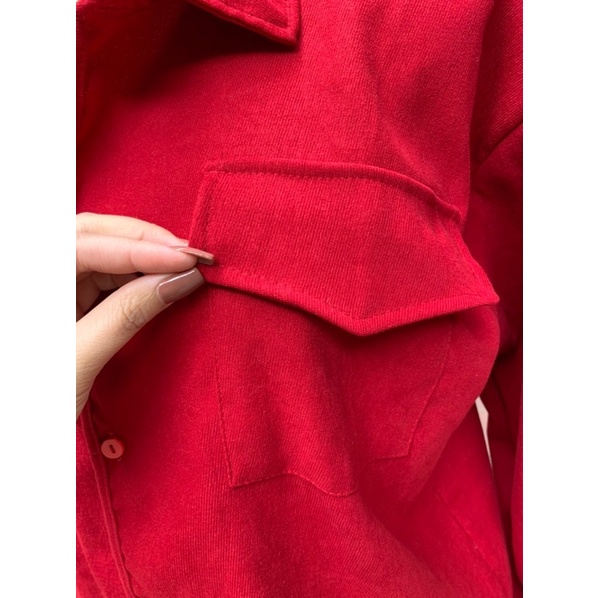 Áo sơ mi nữ nhung tăm màu đỏ form suông giấu quần phối sooc thì quá thời trang, chất nhung tăm mềm mịn không nhăn giá rẻ