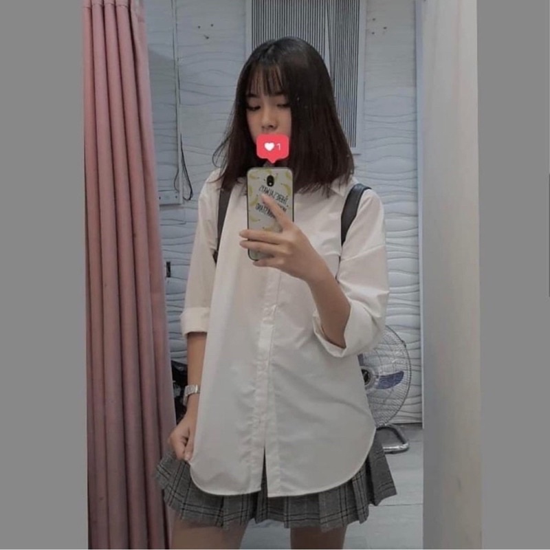 Thời Trang Nữ > Áo > Áo sơ mi || Áo sơ mi tay dài trơn đen trắng basic unisex có size