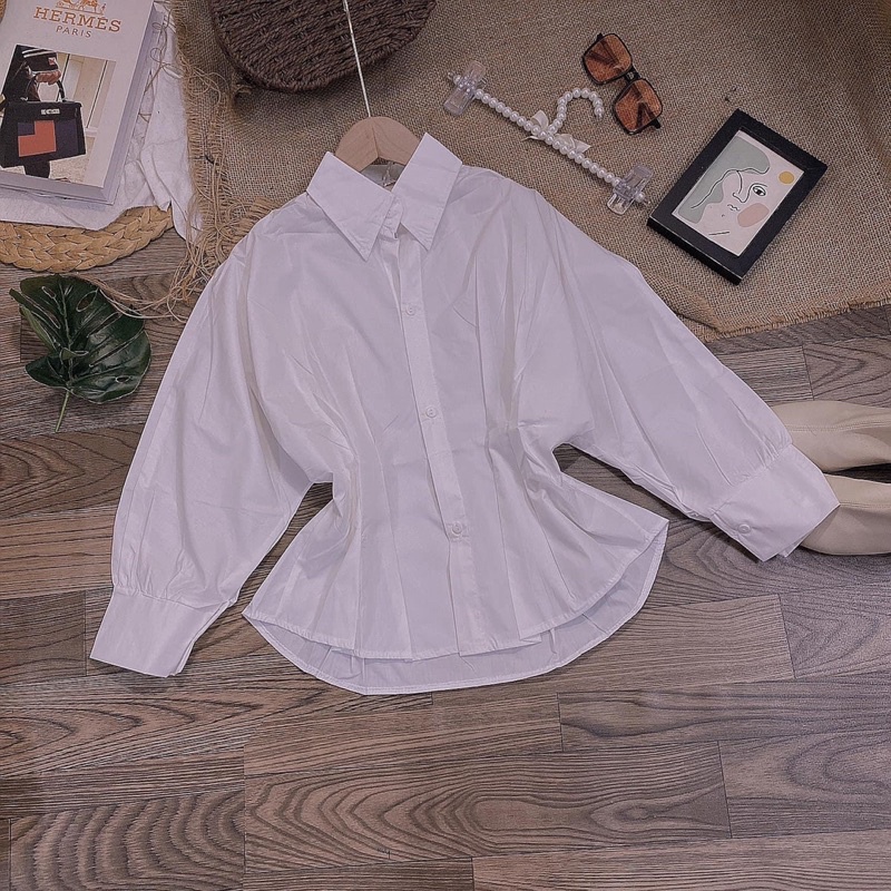 Thời Trang Nữ > Áo > Áo sơ mi || Áo sơ mi tay lửng xếp ly eo