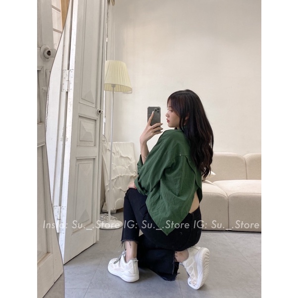 Thời Trang Nữ > Áo > Áo sơ mi || Áo sơ mi thô đũi dáng ngắn lưng xẻ vạt A2256 SUSTORE