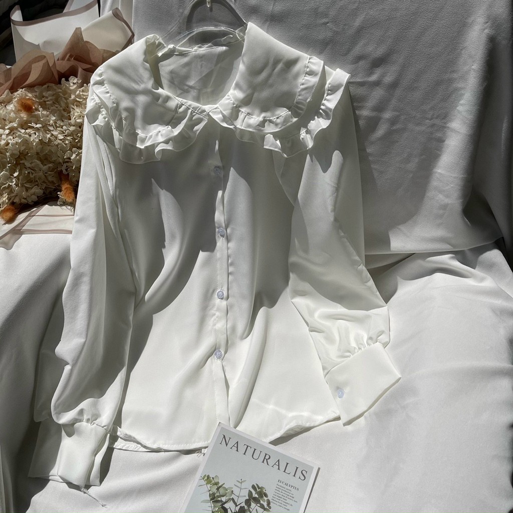 Giới thiệu Áo sơ mi trắng form dài viền bèo cổ 2 tầng viền bèo tiểu thư mới về nữ tính- hàng xuất xịn
