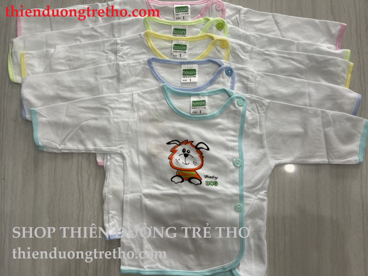 Áo sơ sinh Bossini bác sĩ tay dài viền màu cúc lệch cho bé. Có 5 màu viền giống như hình. Hình thật Shop tự chụp. Các mẹ chọn size và chọn theo phân loại bé trai bé gái nhé (Bé Trai không viền Hồng, Bé Gái đủ màu)