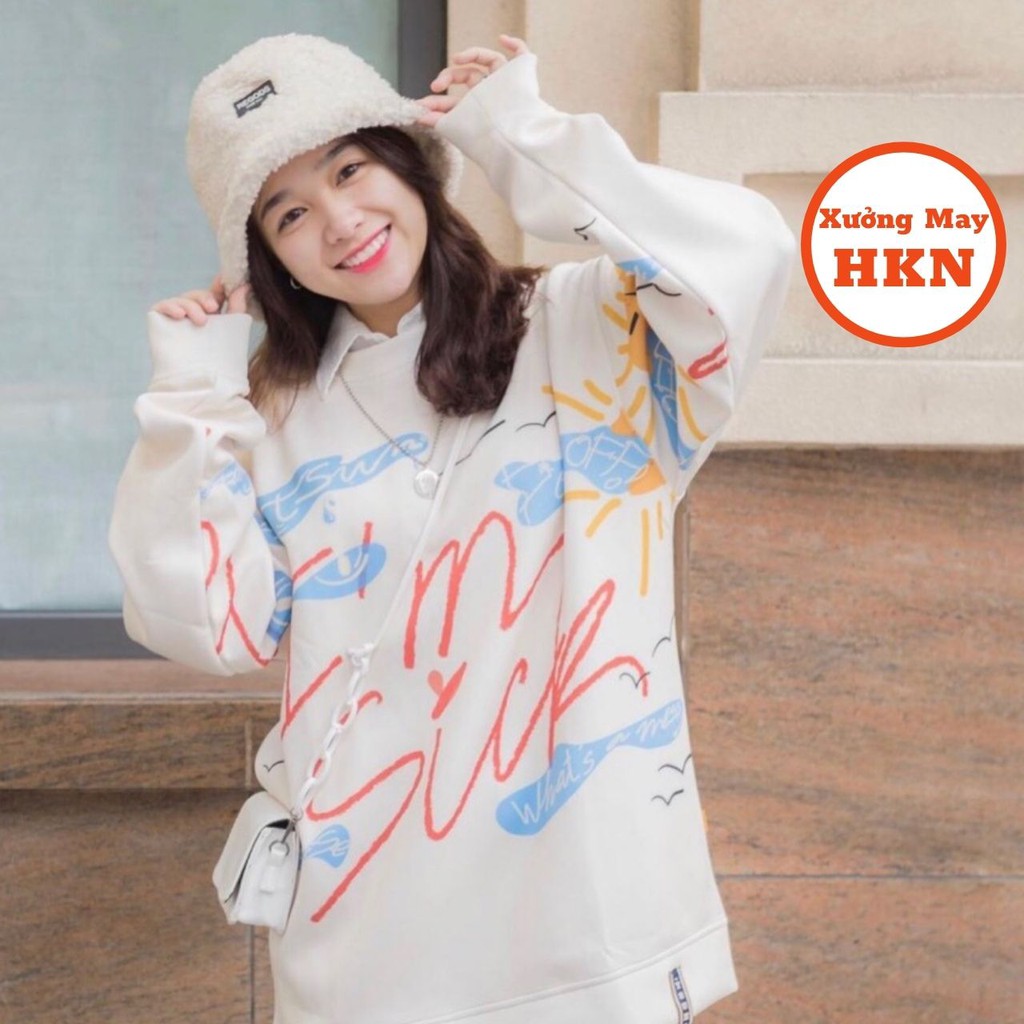 Áo Sweater Nữ In Bầu Trời Sicr Dễ Thương Dài Tay Chất Liệu Nỉ Mềm Mại Mã 626 Xưởng May HKN
