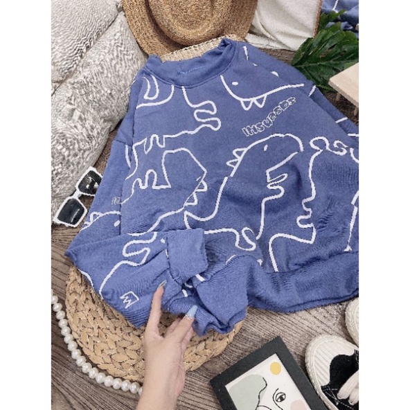 Giới thiệu Áo sweater Unisex Áo nỉ dài tay họa tiết in hình khủng long dễ thương cá tính