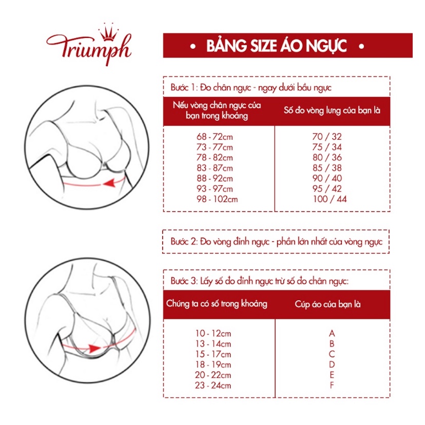 Hướng dẫn bảo quản áo ngực Triumph: - Giặt bằng tay ở nhiệt độ thường - Không sử dụng chất tẩy - Nên phơi ở nơi khô ráo, thoáng mát