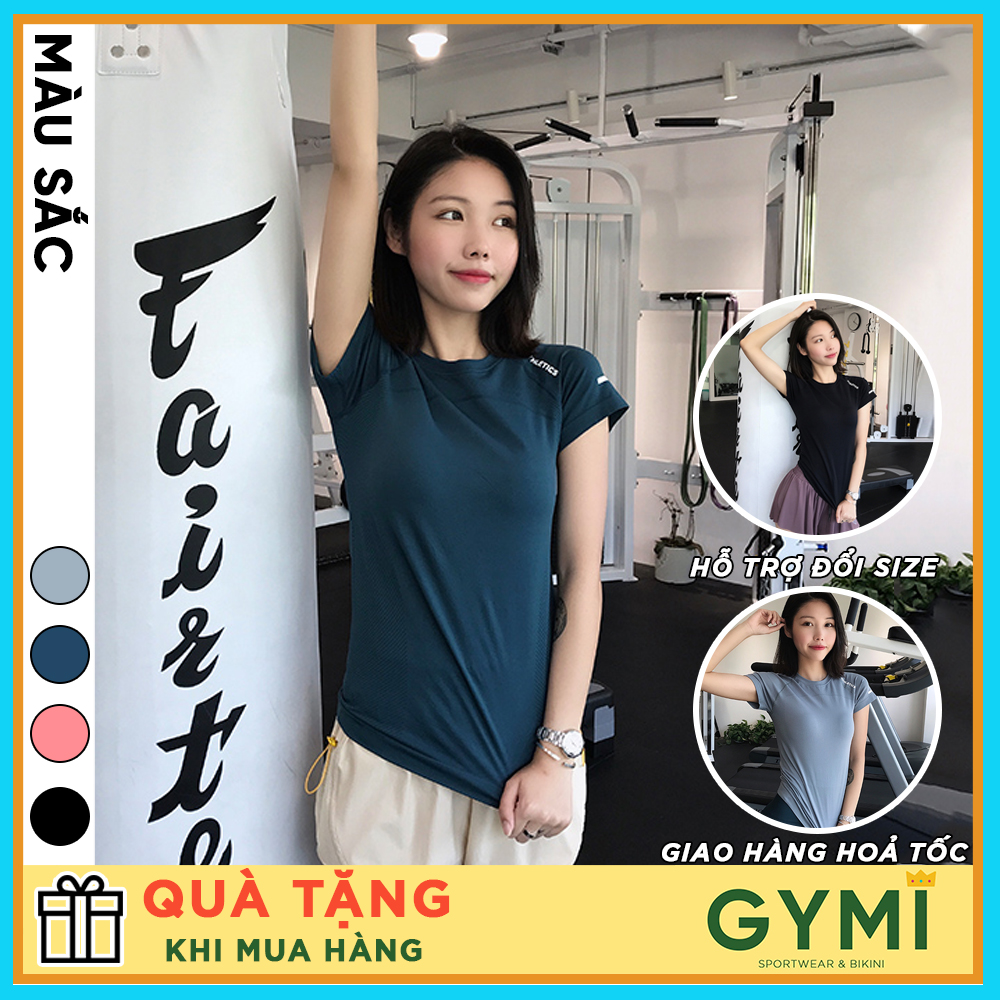 Áo tập gym yoga nữ GYMI AC09 Authentic dáng ngắn cộc tay thể thao chất dệt mịn mát co giãn thấm mồ hôi