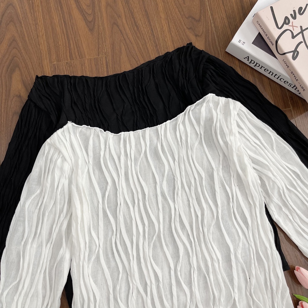 NEW 𝗠𝗢𝗟𝗜𝗦𝗔 𝗧𝗢𝗣 🍃 Mẫu áo hot hit, vừa sang vừa che khuyết điểm tốt ✌🏻 Tone màu trắng/đen mãi basic mãi trường tồn theo thời gian. Nàng thích sơ vin hoặc thả ra ngoài đều đẹp 🌿 2 màu: ⚪️⚫️ Freesize NGỰC DƯƠI 92