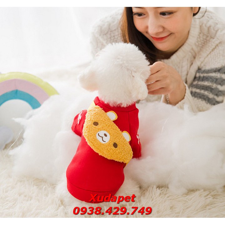 Giới thiệu Áo Tết Cho Chó Mèo Kèm Túi Gấu Vàng May Mắn Đựng Lì Xì chất liệu vải thun co giãn cao cấp - Xudapet - SP000658