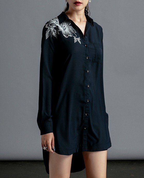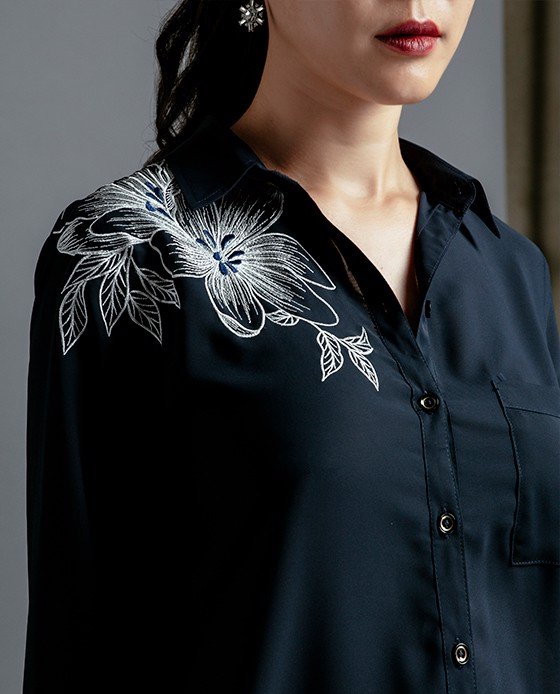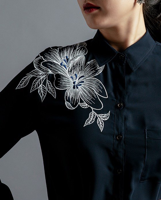 Không chỉ dừng lại ở kiểu dáng, Hity còn mang cả họa tiết thêu hoa 3D đang được giới mộ điệu thời trang yêu thích vào chiếc áo sơ mi oversized. Với kỹ thuật thủ công khéo léo của những người thợ may và thêu lão làng, chiếc áo sơmi oversized với họa tiết nổi bật như một lời khẳng định phong cách thời trang tuy tối giản nhưng vô cùng tinh tế và đẳng cấp của người mặc.