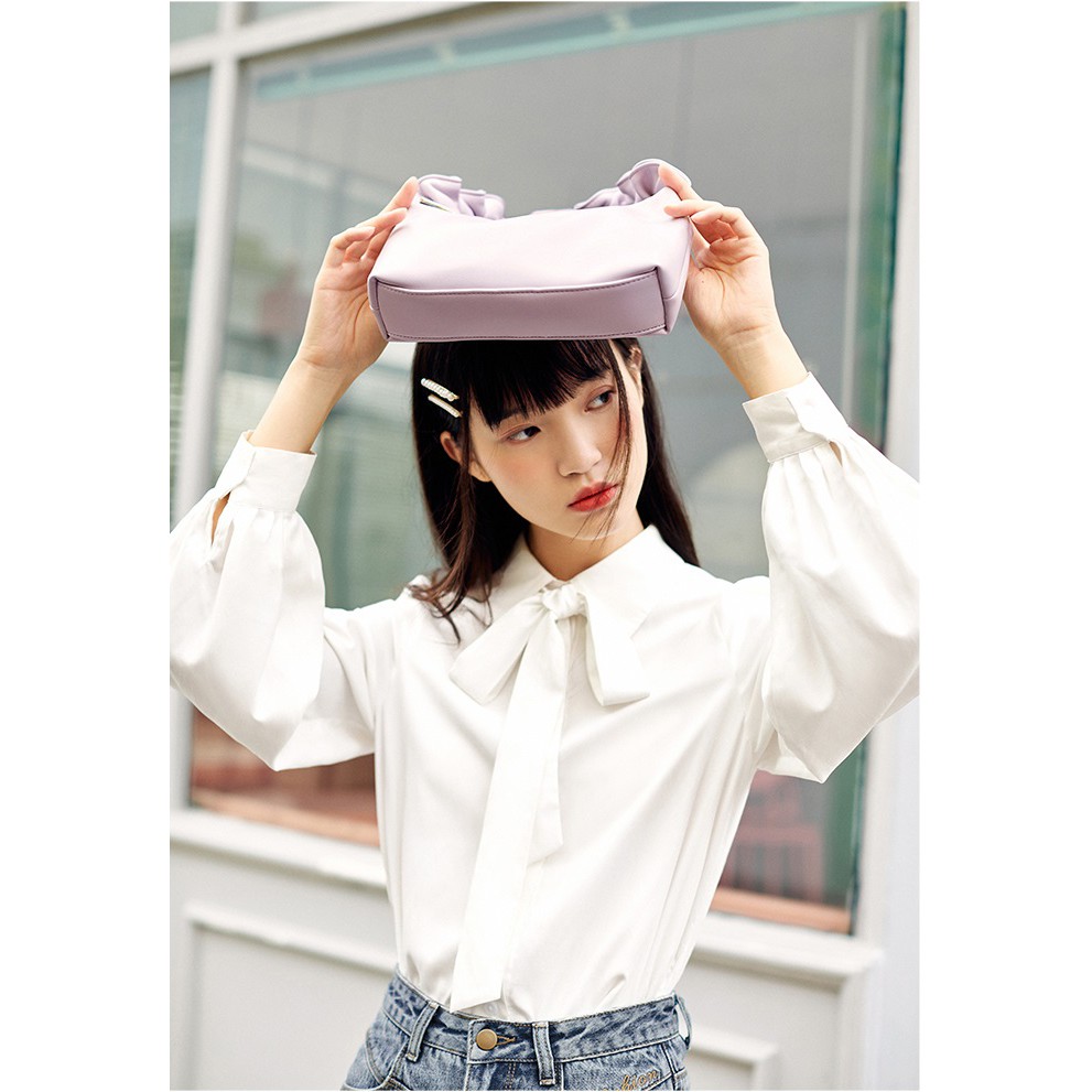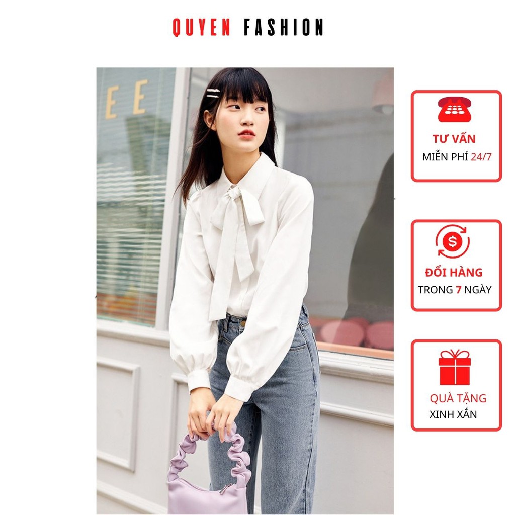 Áo Thời Trang Công Sở Nữ Cổ Đức Thắt Nơ, Sơ Mi Trắng Lụa cát Basic Quyên Fashion AA533