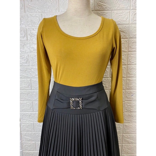 Giới thiệu Áo thu đông nữ dài tay, cổ tròn khoét rộng, chất len mong mỏng nhẹ giữ nhiệt và siêu co giãn, kiểu dáng đơn giản