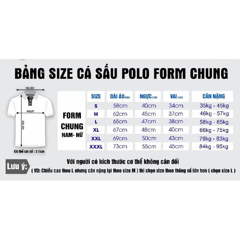 CHẤT LIỆU: - Áo Polo Chất cá sấu gai mịn cao cấp nhất hiện nay, siêu bền, siêu đẹp, không xù lông, không dãn. - Chất liệu poly cao cấp giúp tăng cường độ mềm mại, đứng dáng và thoáng mát gấp 2,5 lần so với sợi thường. -Chất vải đẹp cao cấp không bai, không nhăn, không xù, thông thoáng thấm hút mồ hôi tốt, tạo cảm giác thoải mái cho người mặc.