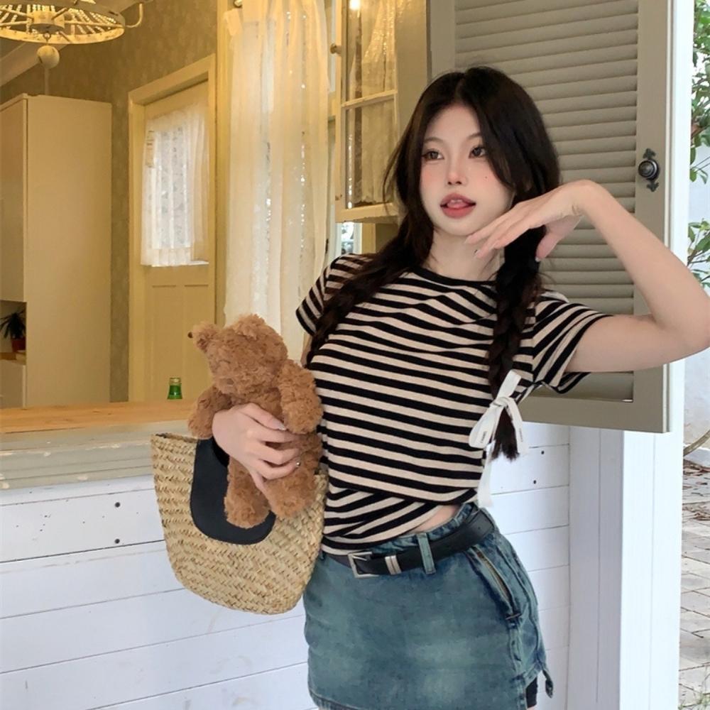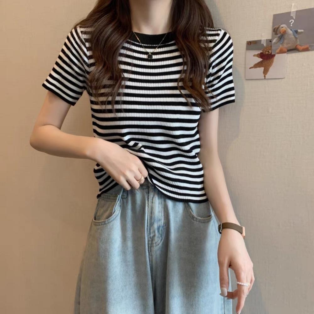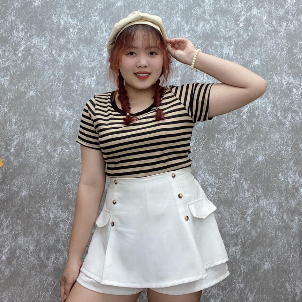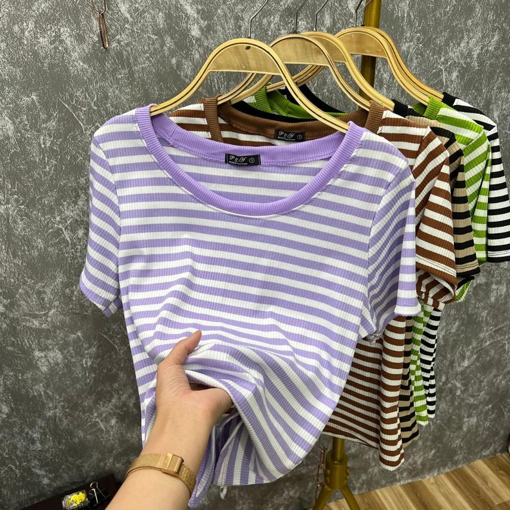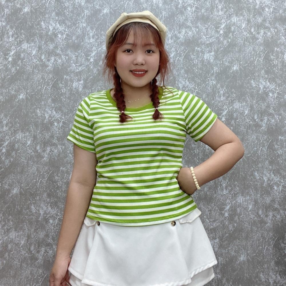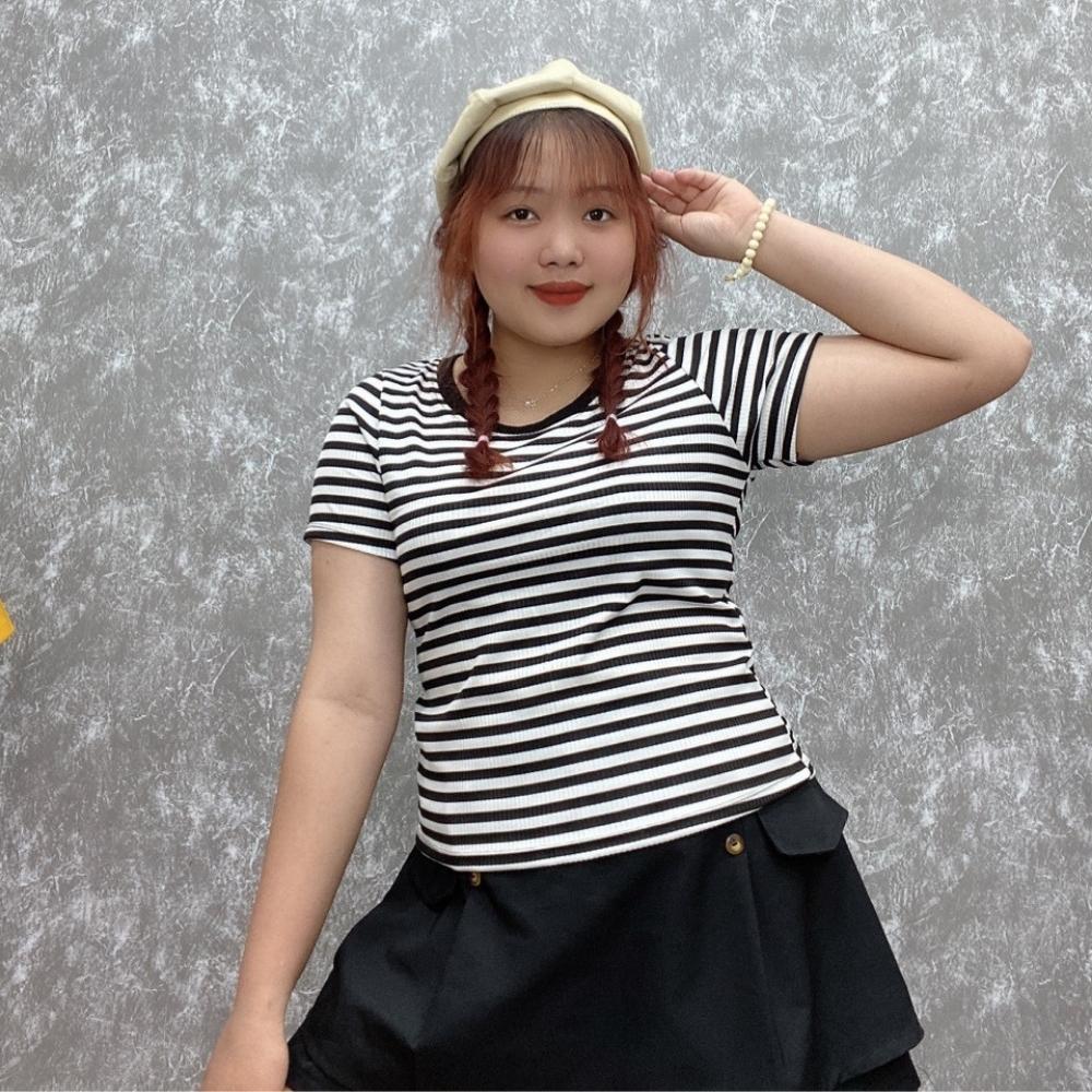 Áo thun bigsize nữ cổ tròn viền tay ngắn thời trang cơ bản hoạt tiết sọc chất liệu thun tăm gân MM
