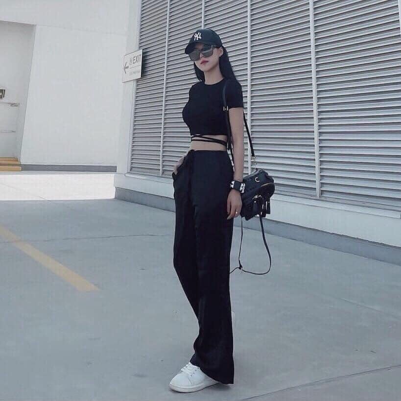 Giới thiệu Áo thun croptop cộc tay nữ buộc dây eo trắng đen sexy form ôm tôn dáng cheapy C85