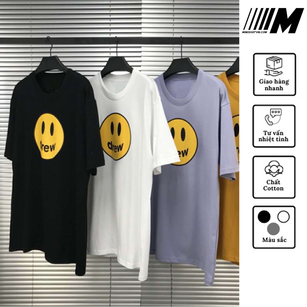Giới thiệu Áo thun Drew mặt cười nam nữ unisex chất tici co dãn 2 chiều dáng rộng tay lỡ thoải mái