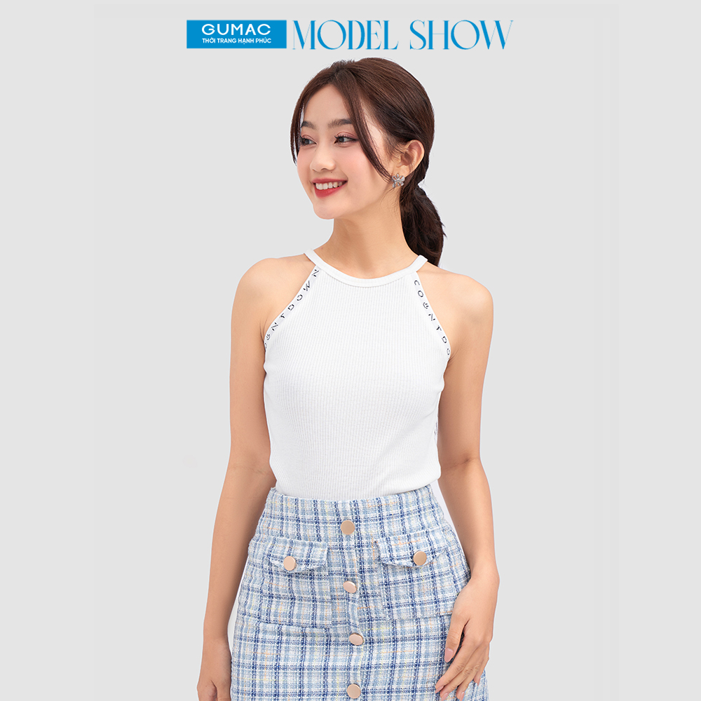 Áo thun hai dây cổ yếm, Vòng nách phối bo dệt thêu chữ Countdown