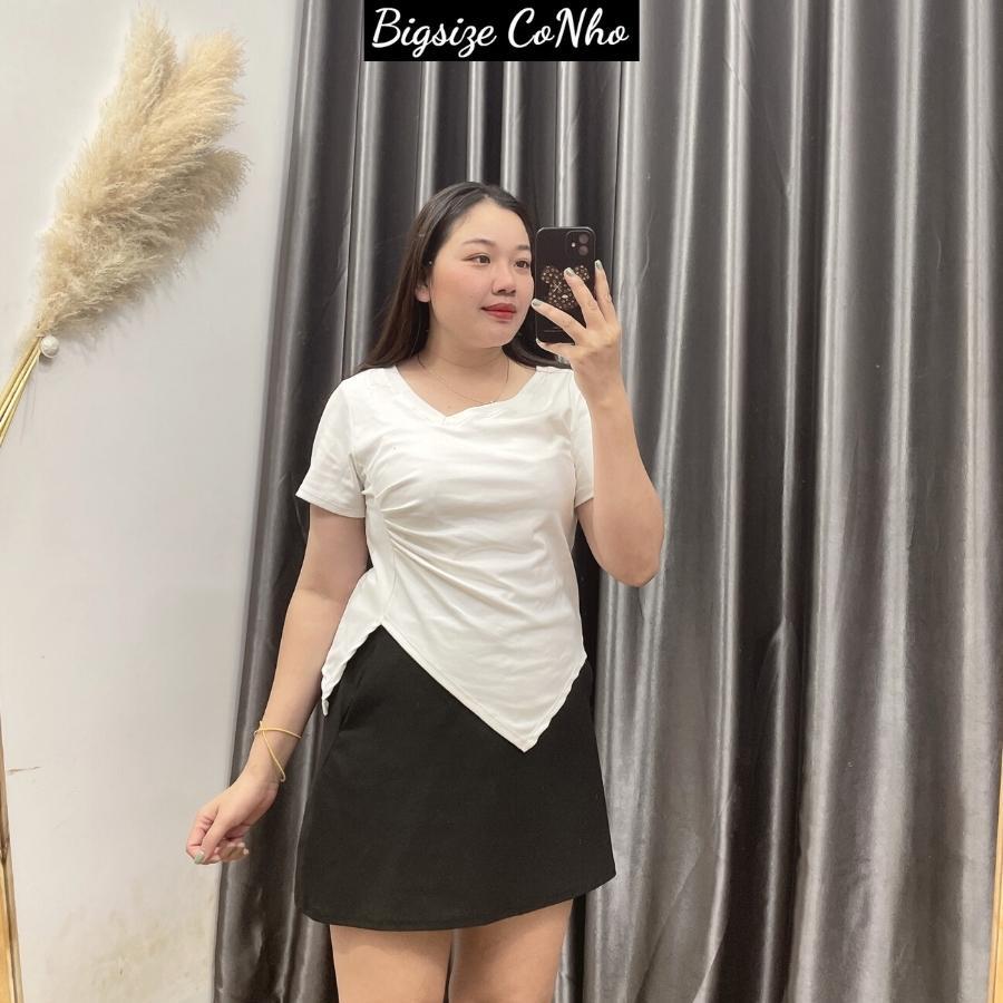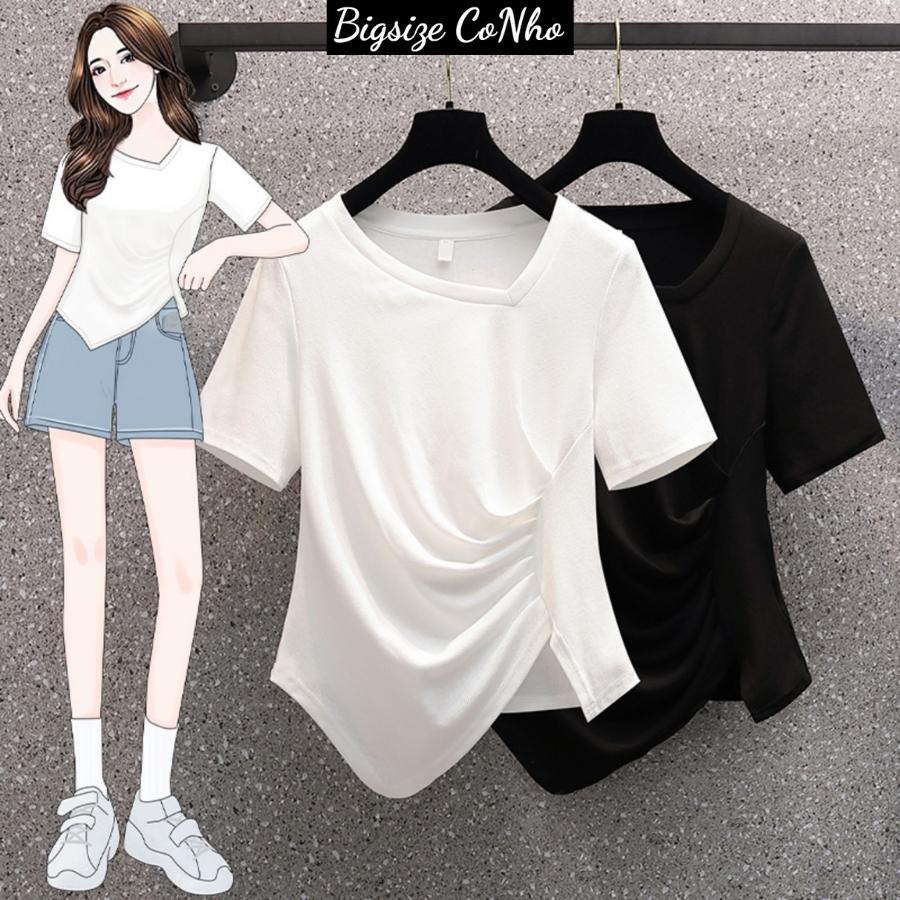Áo thun kiểu tay ngắn bigsize nữ bo sườn tôn dáng, Áo phông dáng dài Chuppy 58-95kg