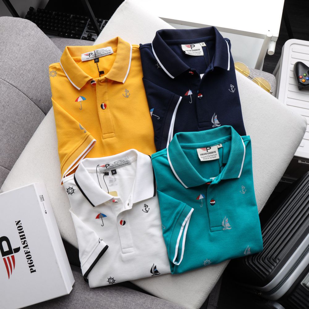 Giới thiệu [Mã LTBAUAB19 giảm 7% đơn 99K] Áo thun nam cổ bẻ họa tiết con thuyền phối bo Pigofashion AHT27 màu vàng, chọn nhiều màu.