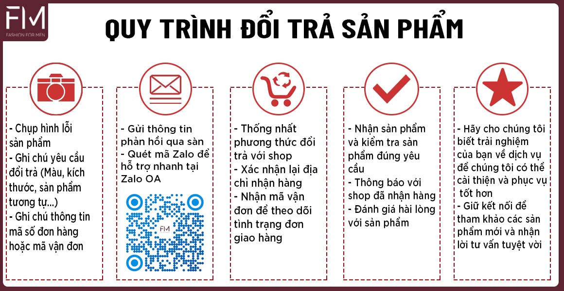 - 15 Ngày ĐỔI/ TRẢ với bất kỳ lý do. Chỉ cần áo còn nguyên MÁC và chưa có dấu hiệu đã sử dụng.