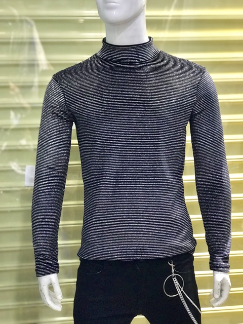 Giới thiệu Áo thun nam cổ trụ sọc nhũ kim tuyến sang trọng