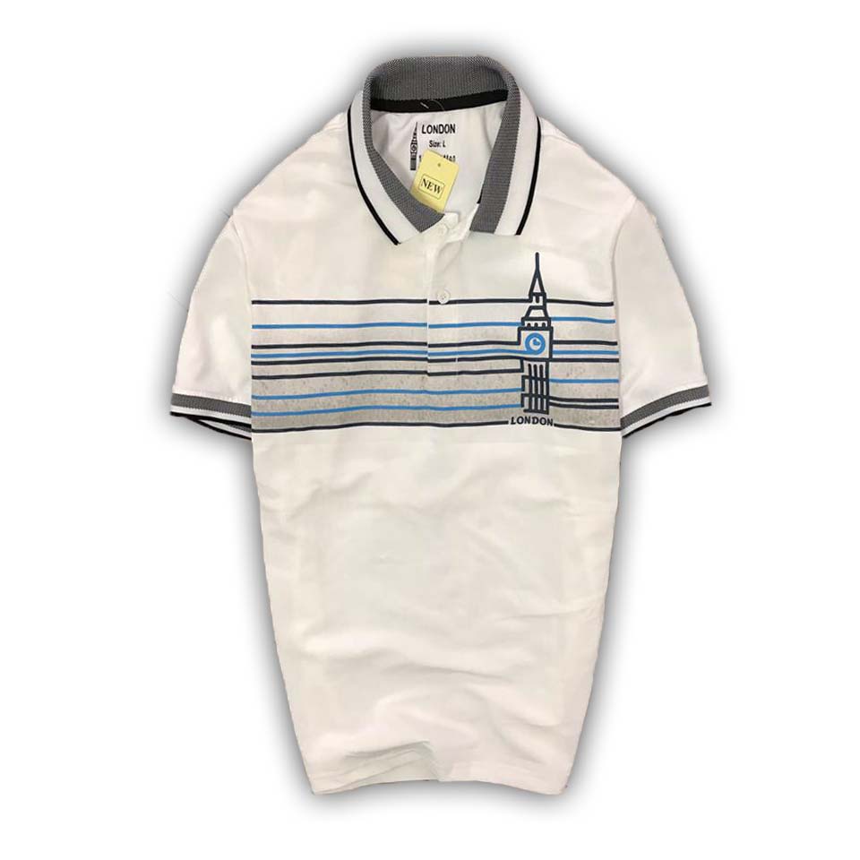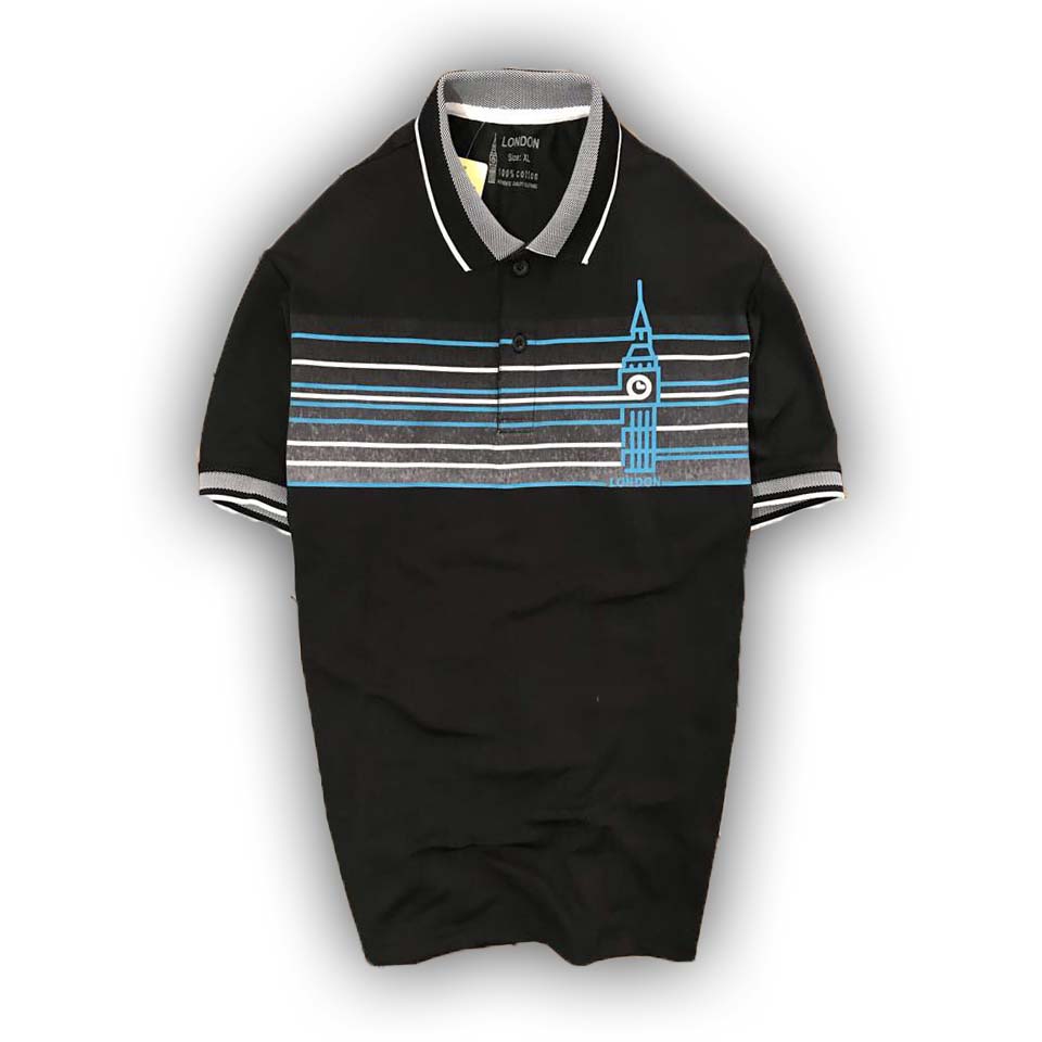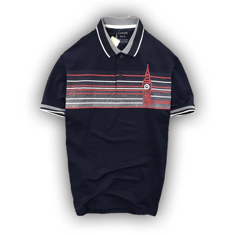 ÁO THUN NAM NGẮN TAY CỔ BẺ HỌA TIẾT NGANG NGỰC - PS130