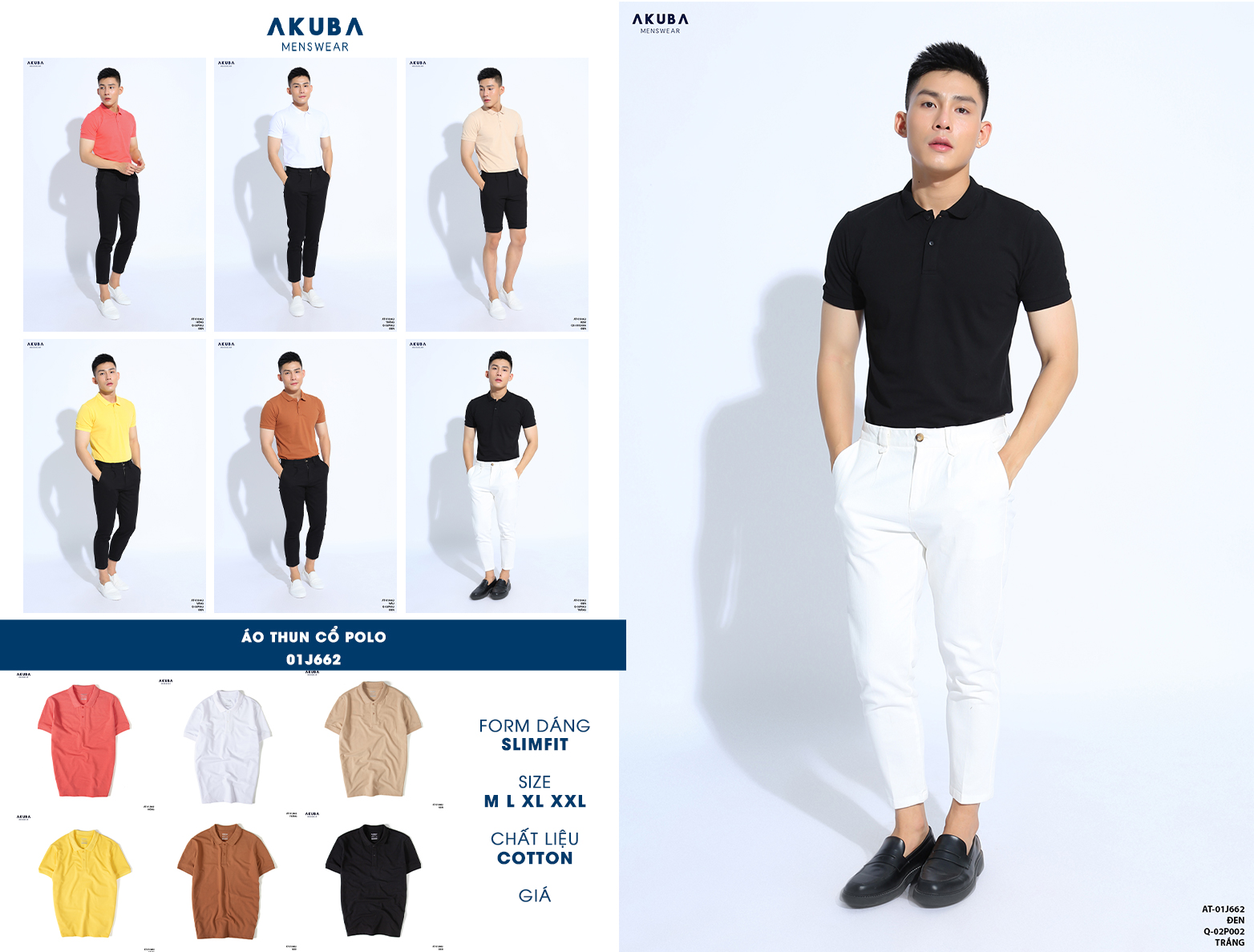 - Sản phẩm: Áo thun nam Polo trơn AKUBA form slimfit, chất liệu cotton dày dặn 01J662