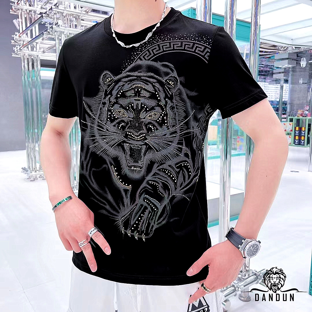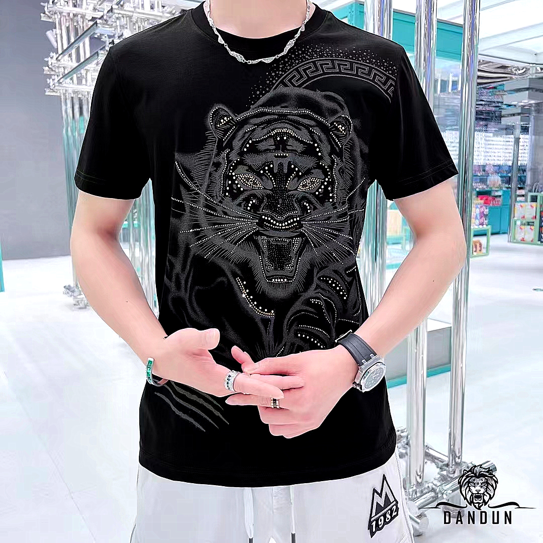 Áo thun nam tay ngắn cao cấp TC chất vải cotton cùng họa tiết in con hổ kết hợp đính hạt, phong cách năng động-8821