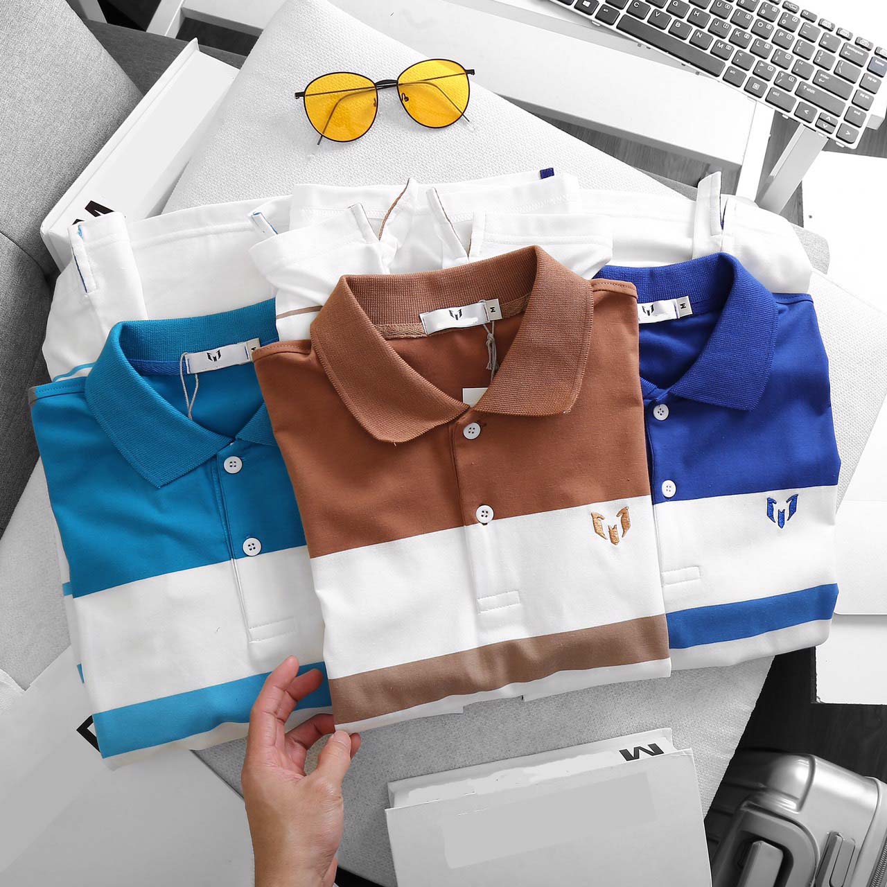 Áo phối sọc đơn giản logo thêu chắc chắn, đẹp mắt