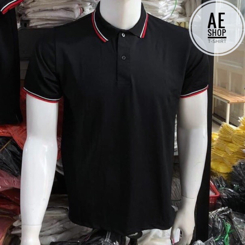 Áo thun ngắn tay có cổ - Vải cá sấu Chất PoLy – Áo Thun kiểu có viền sọc – Chất vải cá sấu cao cấp, dày dặn mềm mịn và mát, co giãn 4 chiều. – Tay ngắn, Form suông, cổ bẻ cài nút.