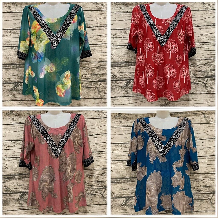 | Kích thước | áo thun nữ trung niên hàng thiết kế cực chuẩnchất liệu thun co giản mặt rất mát , kiểu áo đính đáfree size 50-62 kí mặt vừa tuỳ chiều cao nha khách |