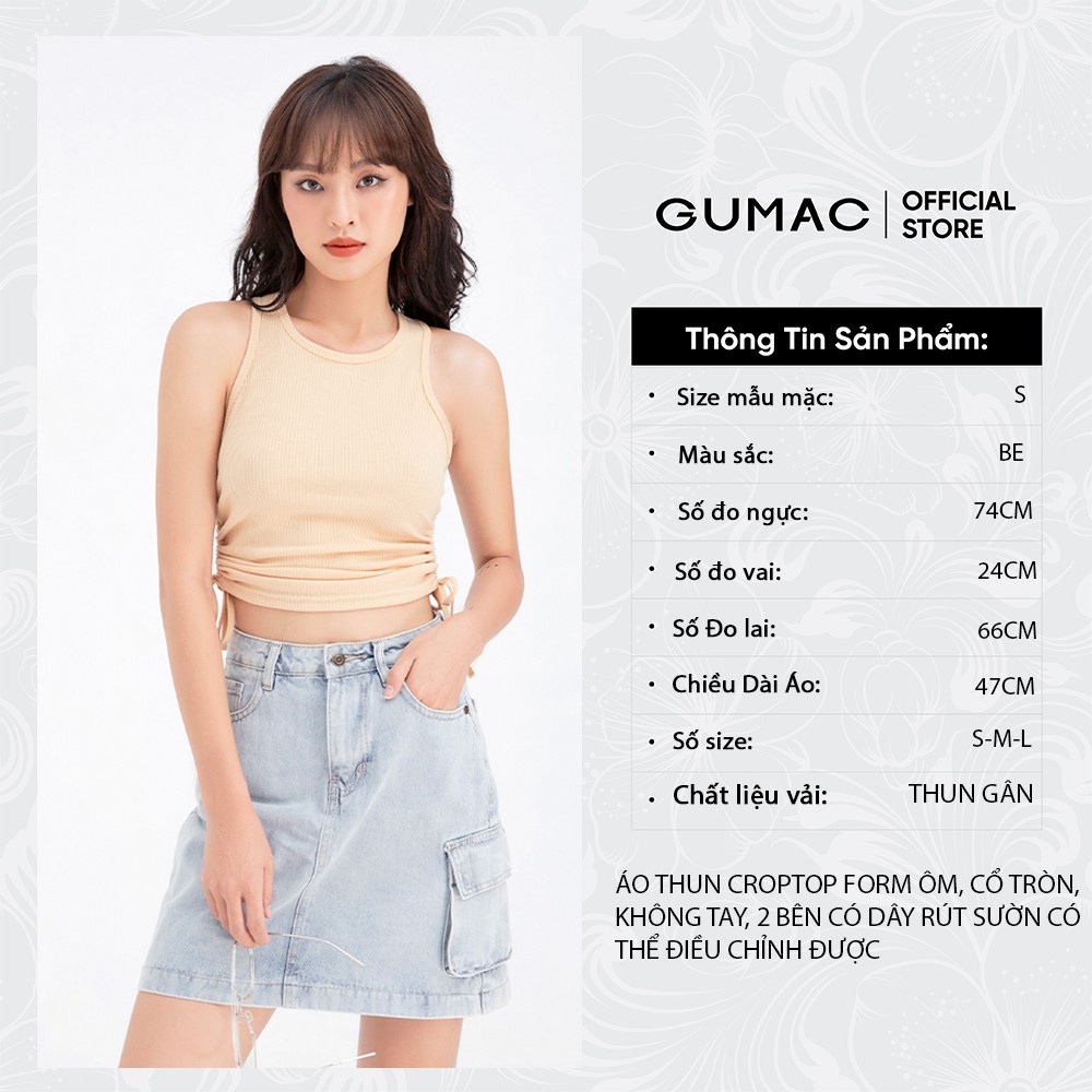 Thời Trang Nữ > Áo > Áo hai dây và ba lỗ || Áo thun nữ sát nách rút sườn GUMAC màu be cá tính ATB637