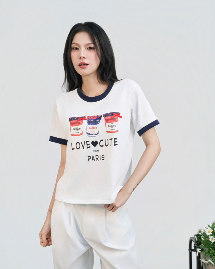 ✿ Sản phẩm : Áo thun nữ tay phối chất vải thoáng mát thấm hút tốt Love Cute Miều Est.2013