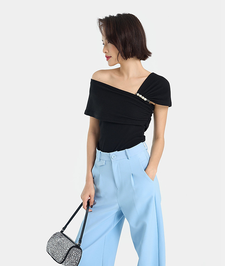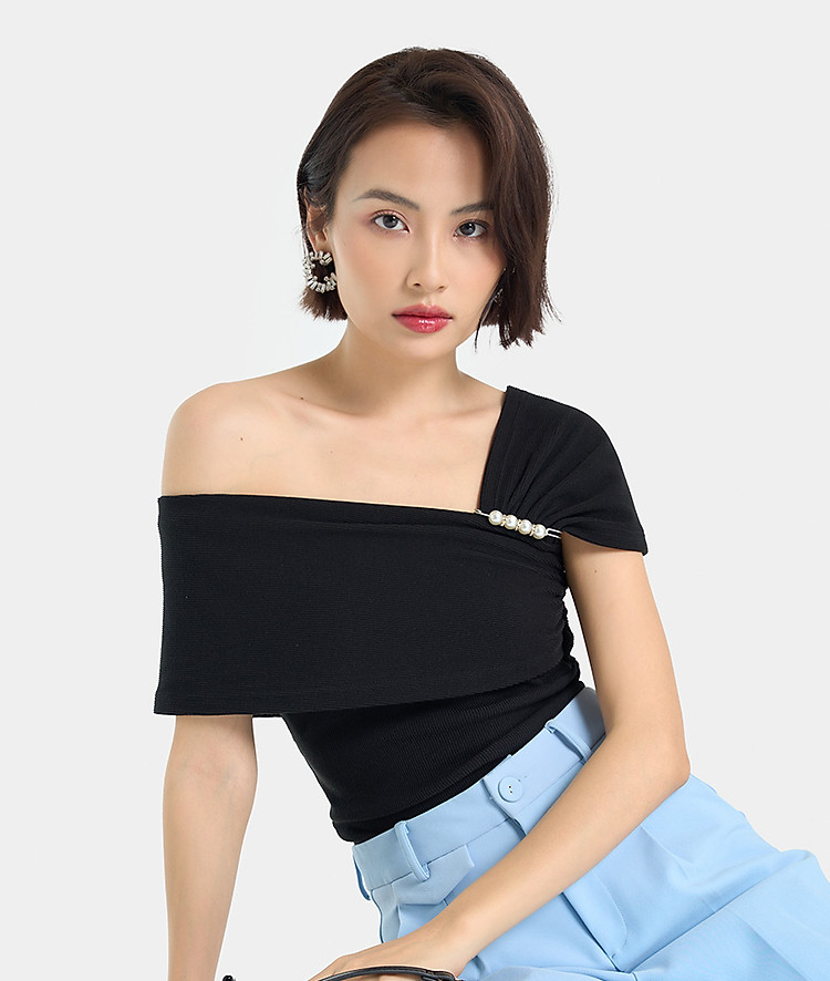 Áo Thun Nữ Thời Trang HNOSS Lệch Vai Phối Ngọc HNATH033