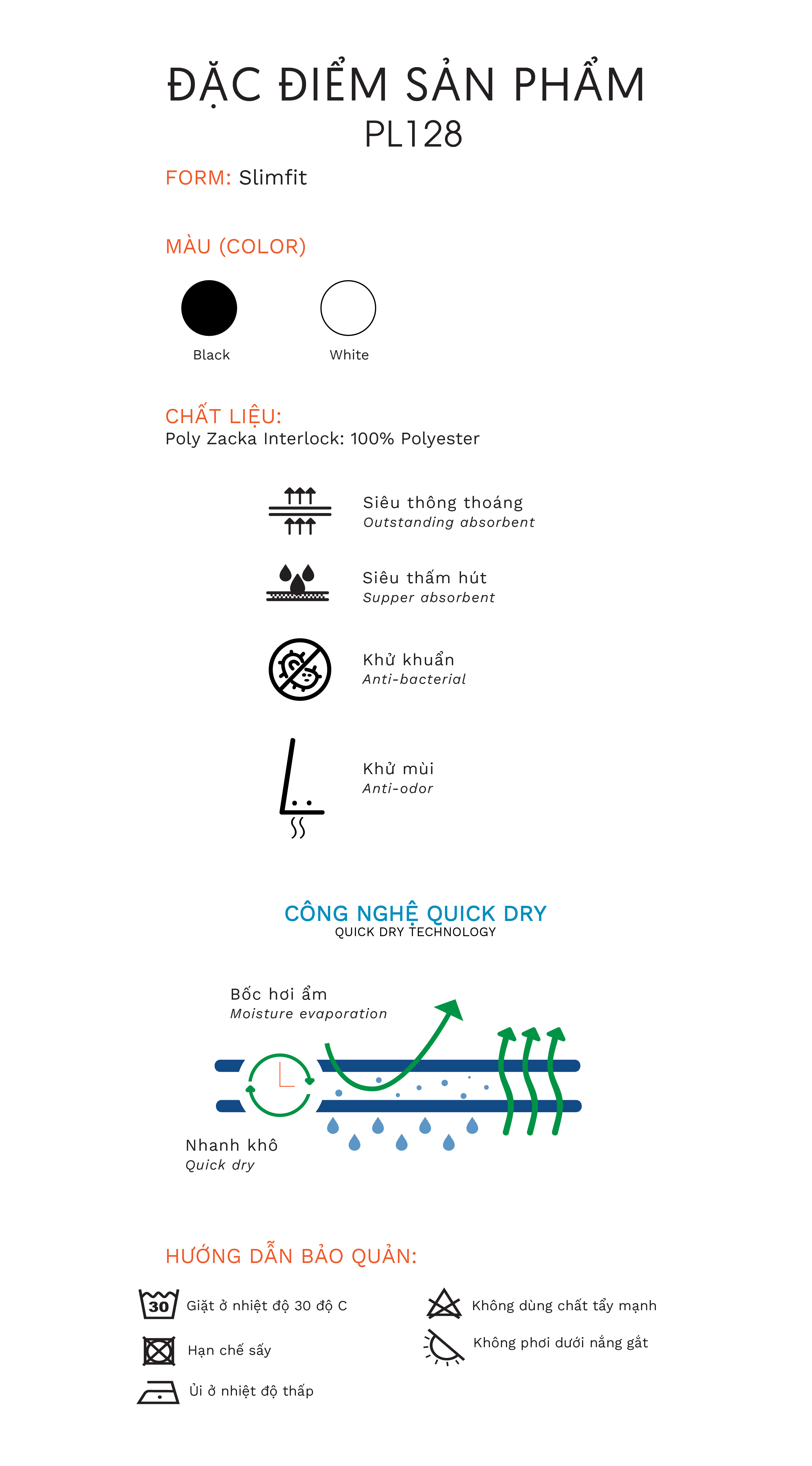 Thành phần: 100% Poly Quick Dry