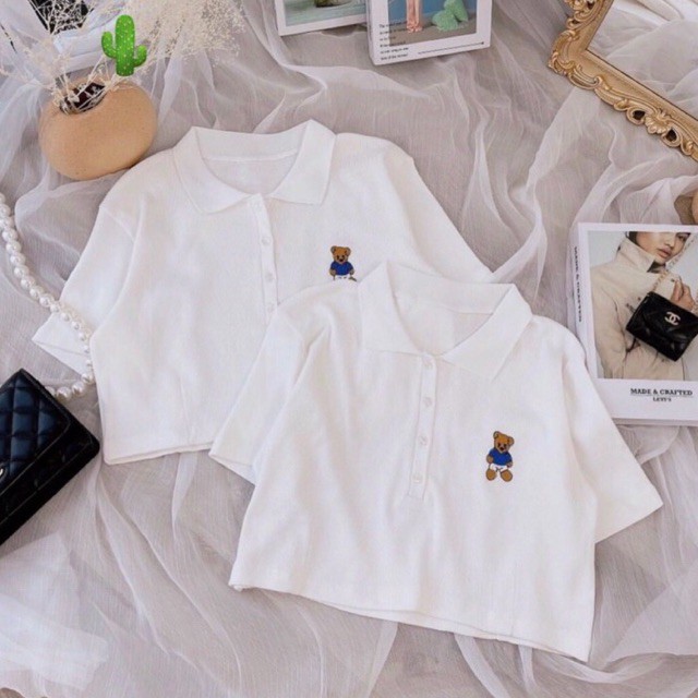 Giới thiệu Áo thun polo thêu gấu ulzzang dễ thương - AO051