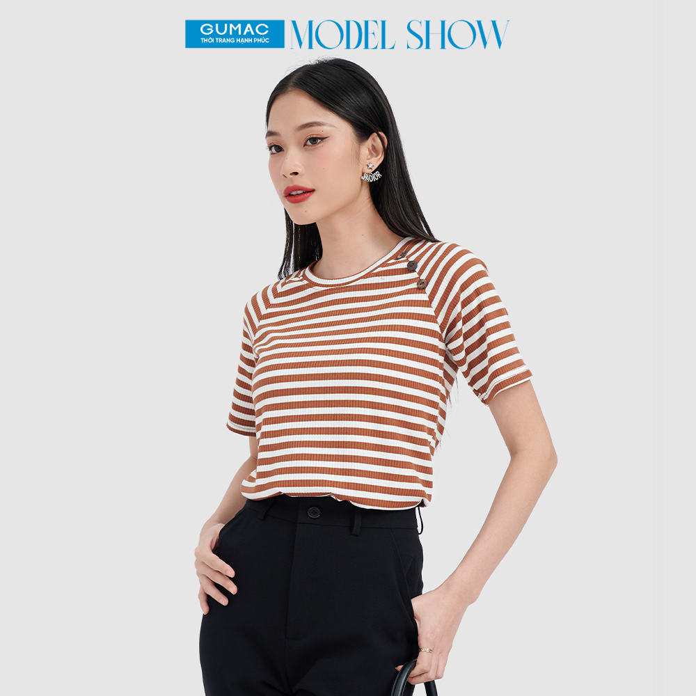 * Áo thun kiểu cổ tròn tay lỡ form có eo nhẹ. có nút đính 1 bên tay*