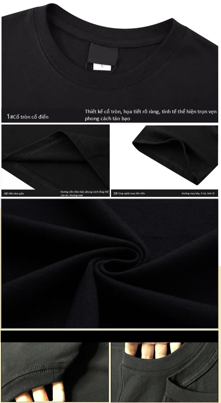 - Thông số kĩ thuật : Áo thun cố tròn, tay 3/4, dáng rộng / Áo hoodie và khoác mũ trùm 1 lớp, vải nỉ, túi ốp ngoài