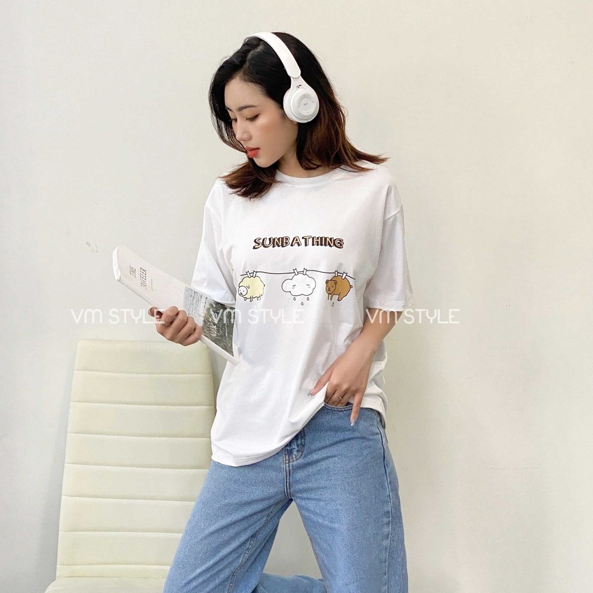Giới thiệu Áo thun tay lỡ VM STYLE unisex, áo phông nữ form rộng dễ thương in chữ SUNBATHING 22ATU03ND0604