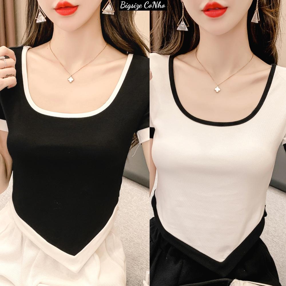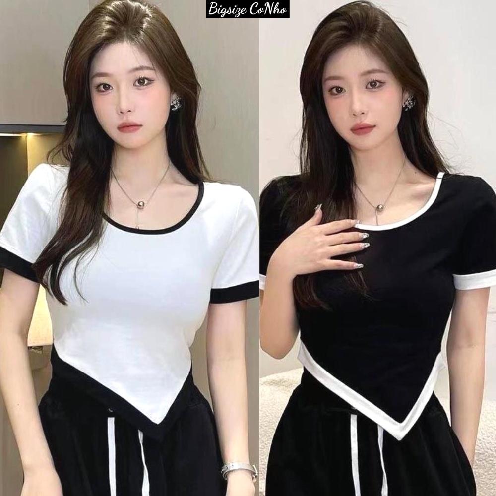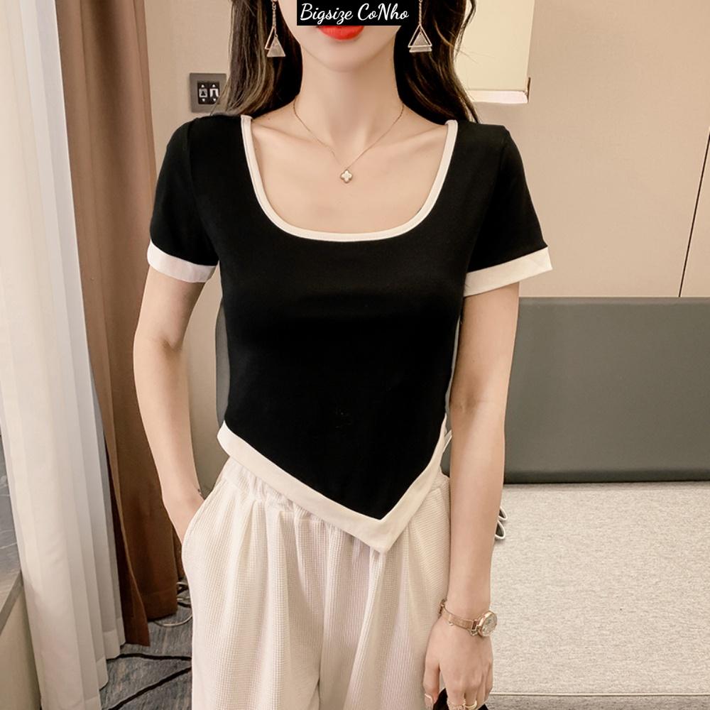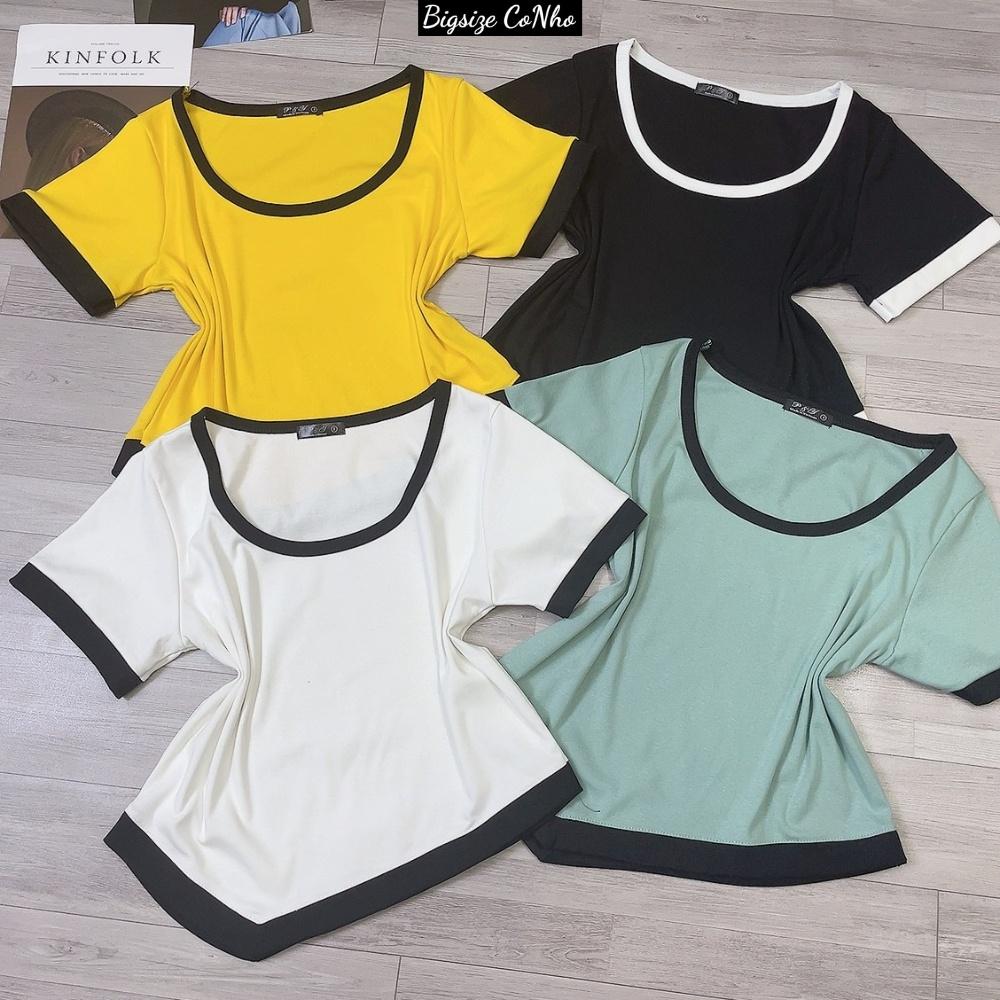 Áo thun tay ngắn bigsize nữ cổ tròn viền tà nhọn cách điệu BIGSIZE CÔ NHỎ, Áo phông size lớn tới 95kg A47