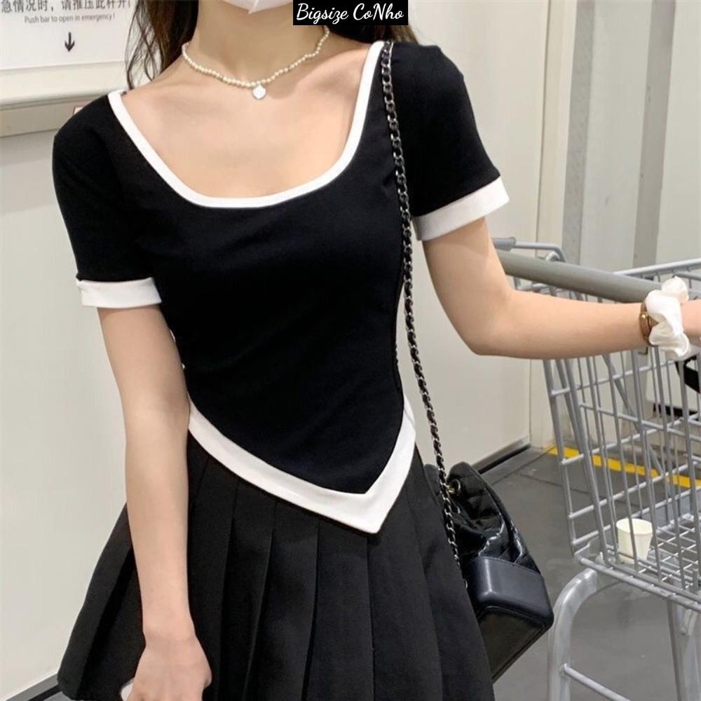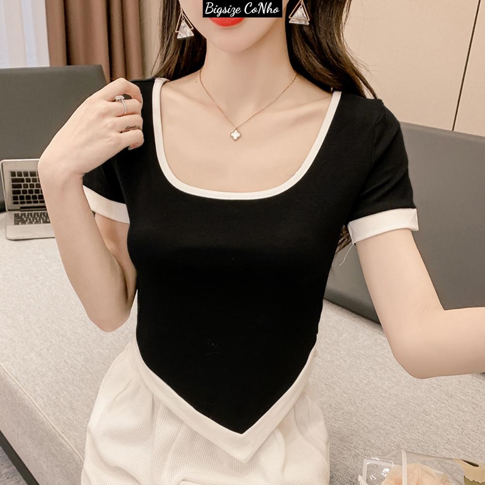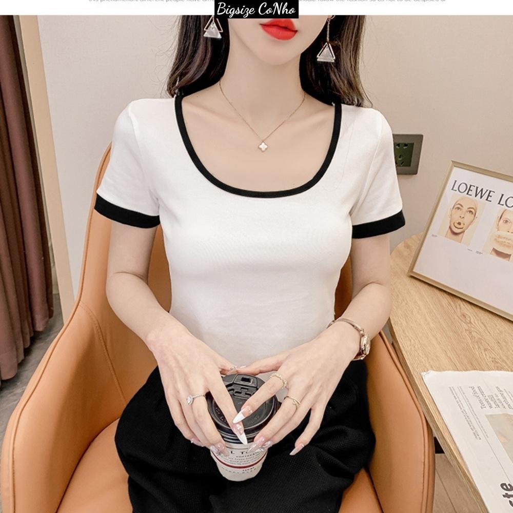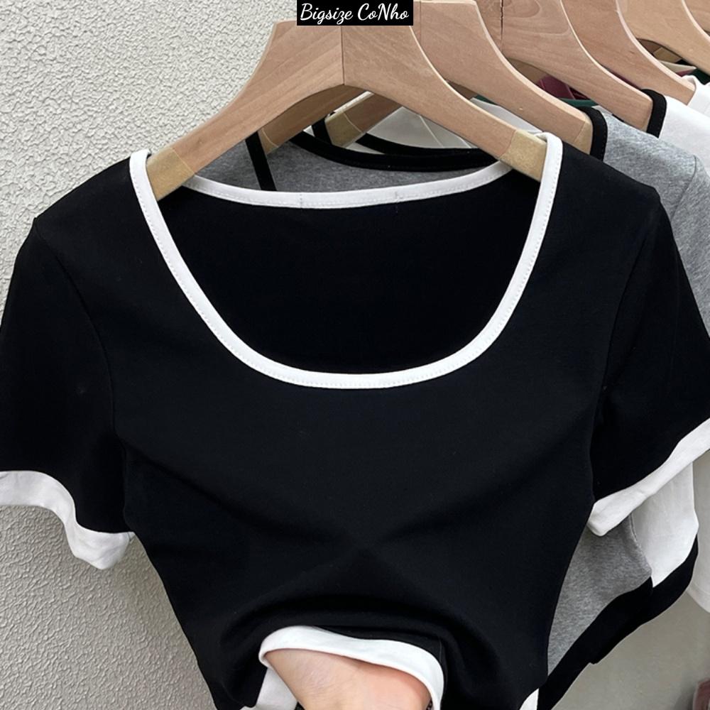 Áo thun tay ngắn bigsize nữ cổ tròn viền tà nhọn cách điệu BIGSIZE CÔ NHỎ, Áo phông size lớn tới 95kg A47
