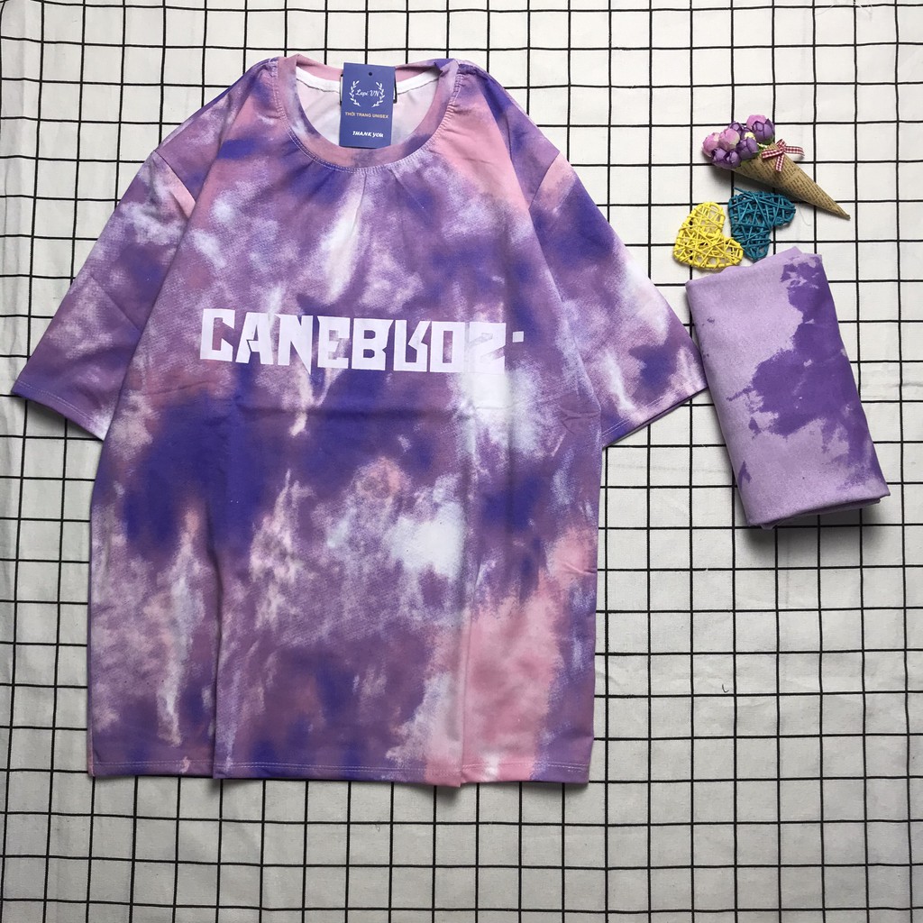 Giới thiệu Áo Thun Unisex Loang Tím Lapi VN, Chất Cotton Form Rộng Tay Lỡ Cổ Tròn Freesize, Big Size