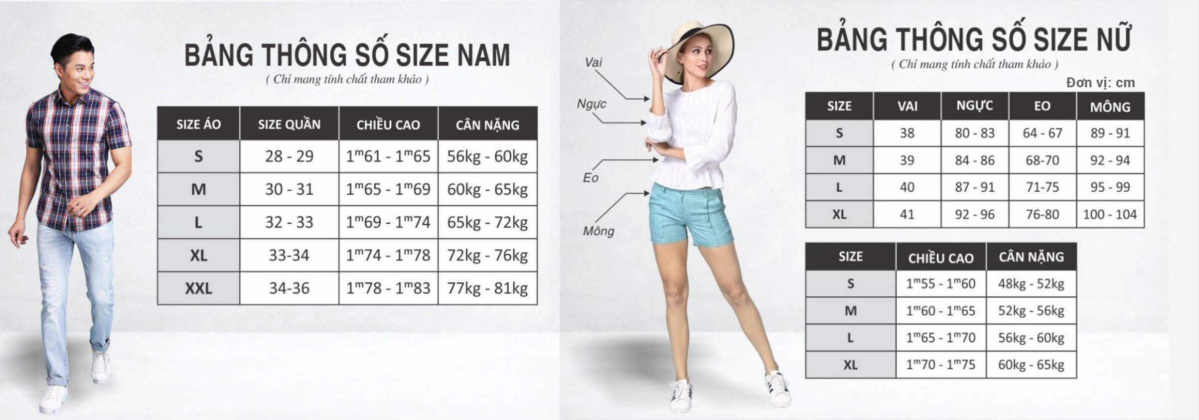 - Bảng size chart chỉ mang tính chất tham khảo, tùy thuộc vào số đo cơ thể mỗi người và chất liệu vải khác nhau sẽ có sự chênh lệch nhất định từ 1 - 2cm. NẾU CHƯA CHẮC CHẮN VỀ CHỌN SIZE SẢN PHẨM quý khách vui lòng INBOX để được nhân viên hỗ trợ.