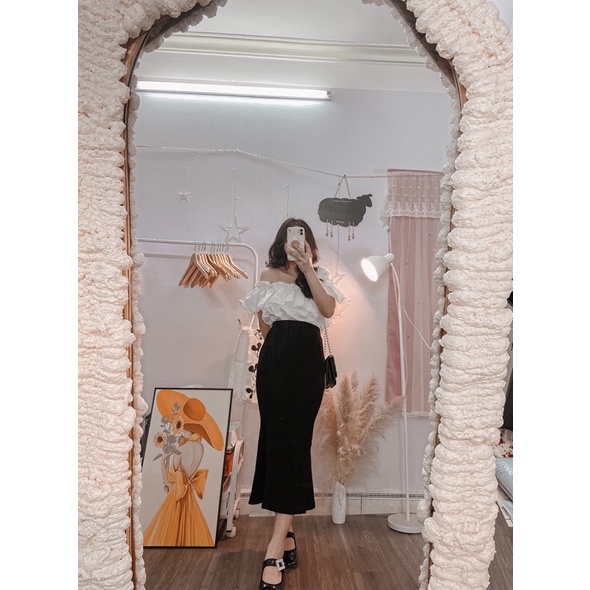 Áo trễ vai tay bèo tiểu thư /hàng sẵn