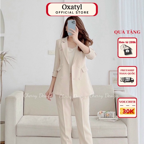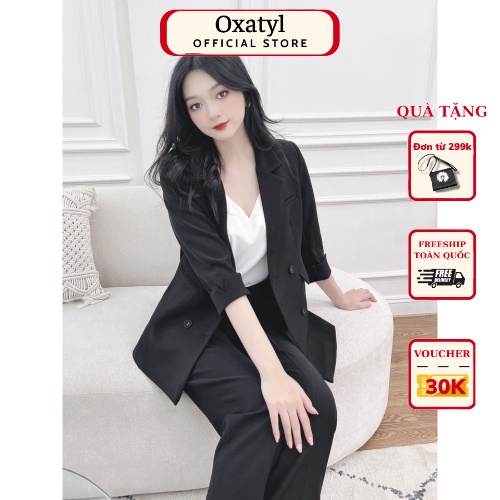 - Áo vest nữ công sở OXATYL cổ chữ K tay lỡ 2 lớp 4 cúc 2 túi M453 với kiểu dáng basic, dễ mặc, dễ phối