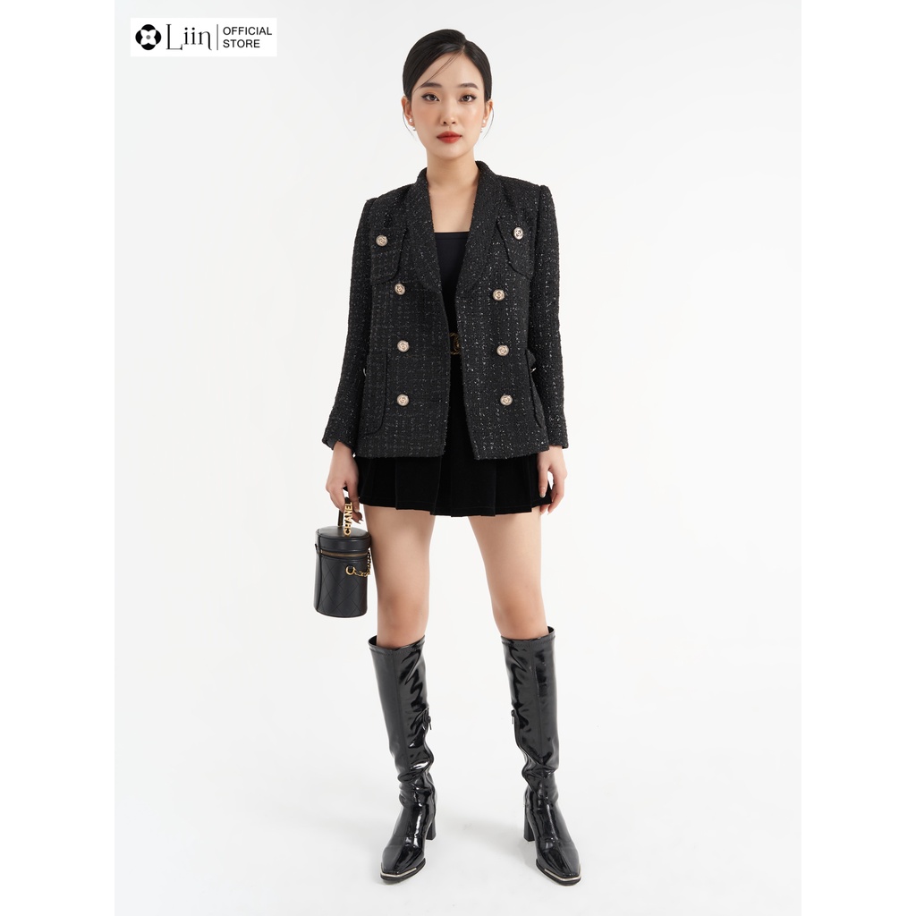 Giới thiệu Áo vest dạ tweed màu đen dày dặn, kiểu dáng sang trọng, hiện đại Liin Clothing V5365