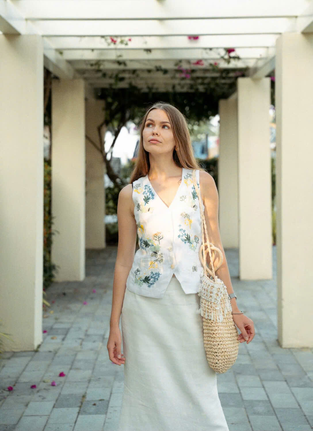 Không chỉ là những bông hoa, chiếc lá đơn thuần, đó là cả một bản hòa ca của thiên nhiên nhiệt đới được tái hiện sống động: những cụm lá cọ xòe rộng, những đóa hoa lạ khoe sắc thắm, hay những nhành cây vươn mình đầy sức sống. Với Áo Vest Linen Thêu Tay Mơ, bạn không chỉ khoác lên mình một món đồ thời trang, mà còn mang theo một tác phẩm nghệ thuật, một mảnh ghép của giấc mơ nhiệt đới đầy màu sắc và sự tự do. Đây là lựa chọn hoàn hảo để thể hiện gu thẩm mỹ tinh tế và tình yêu với những thiết kế thủ công độc bản.