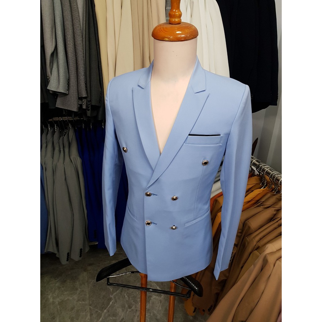 Giới thiệu Áo vest nam màu xanh da trời chất liệu vải dày mịn kiểu 6 cúc